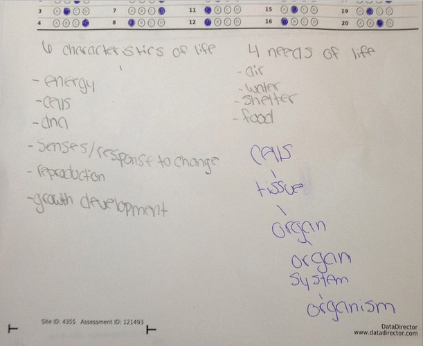 Finally, the age old practice of eliminating the wrong answers. I remember being in 2nd grade and Mrs Garrison at Monroe Elementary teaching us how to eliminate the wrong answers. Cross them out so we don’t accidentally pick the wrong answer. In my classroom, when I collect the test papers I love looking at student evidence of thinking. The pages are marked up, with crossed out choices and helping words. I encourage my students to write out their work on the TEST page before filling out the “bubble” sheet. On last week’s test I had two students come show me their tests to give evidence that they made a transference error not an error in thinking. Having the correct answer on their test paper but wrong on “bubble’ sheet helped me know what skills were missing. How would this work for an online test? Where can they write notes? make cross outs?
